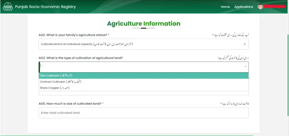 Step 7: Agriculture Details